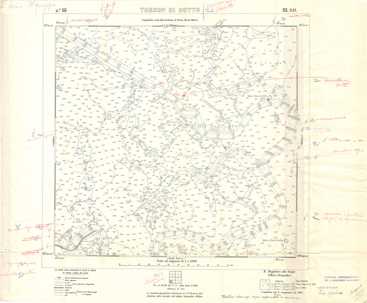 "Carta prodotta e stampata dall' IGM negli anni dal 1932 al 1934 su rilievi eseguiti dall' Ufficio Idrografico del Magistrato delle Acque negli anni dal 1921 al 1933"