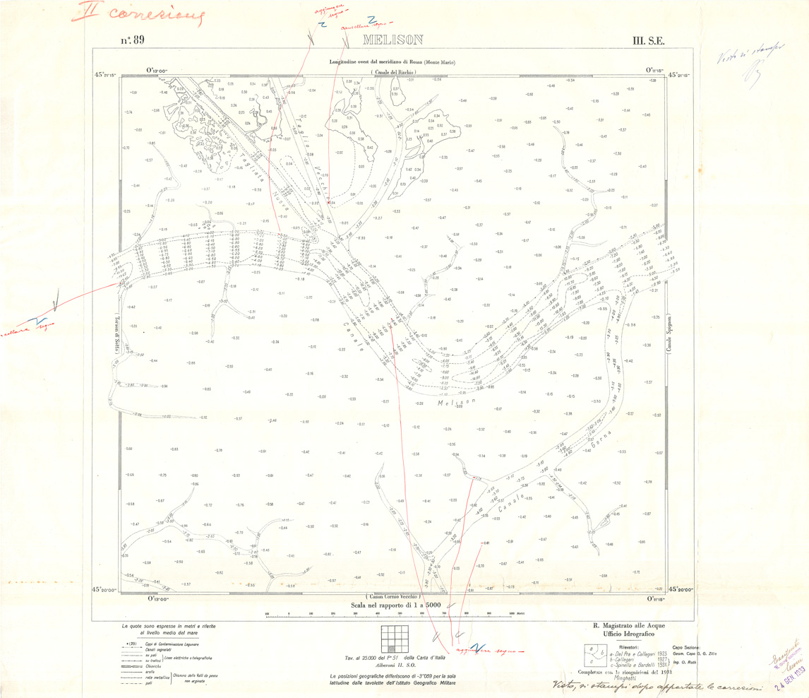 "Carta prodotta e stampata dall' IGM negli anni dal 1932 al 1934 su rilievi eseguiti dall' Ufficio Idrografico del Magistrato delle Acque negli anni dal 1921 al 1933"