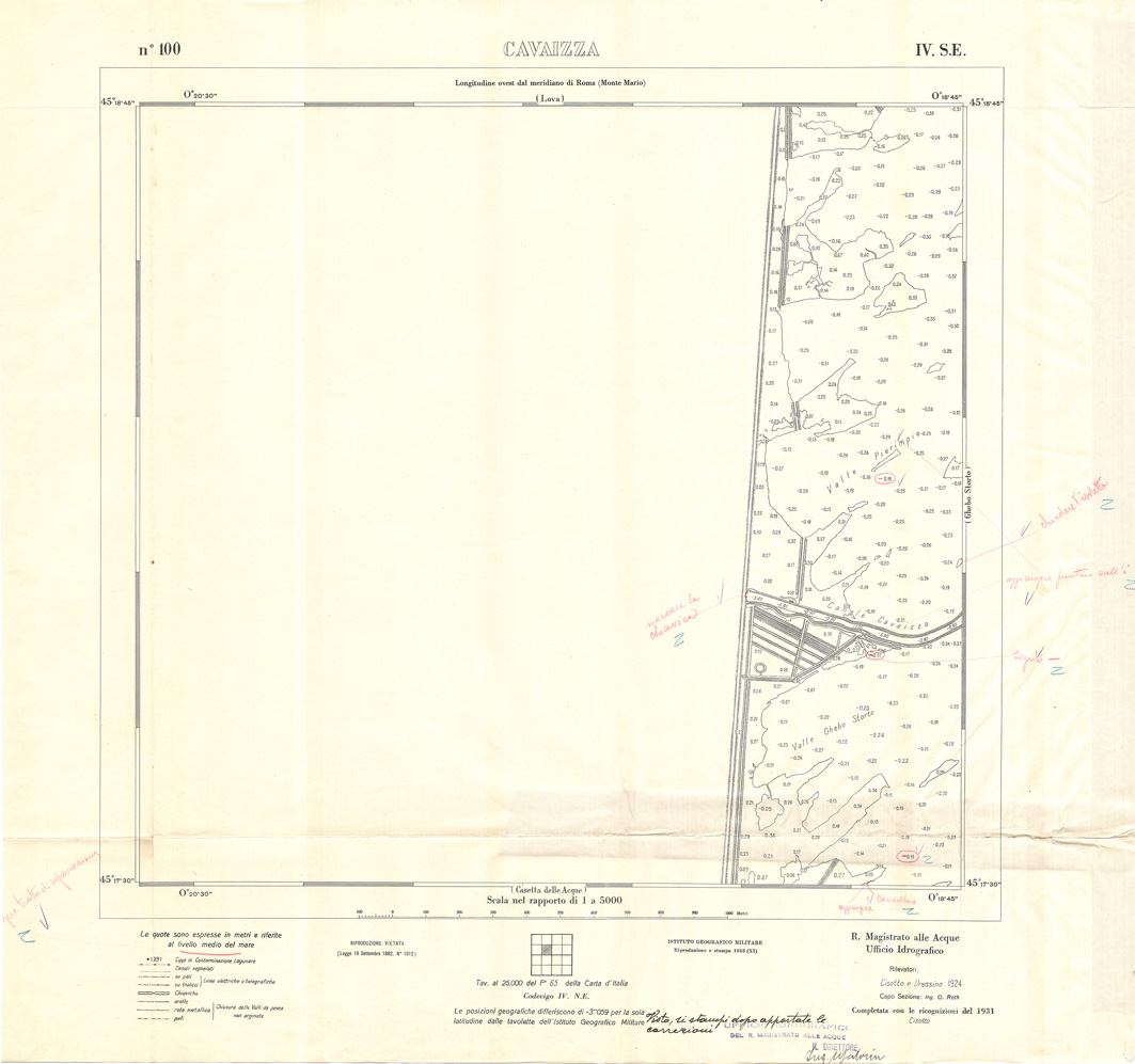 "Carta prodotta e stampata dall' IGM negli anni dal 1932 al 1934 su rilievi eseguiti dall' Ufficio Idrografico del Magistrato delle Acque negli anni dal 1921 al 1933"