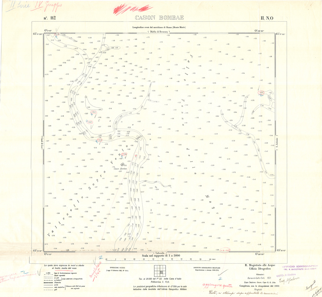 "Carta prodotta e stampata dall' IGM negli anni dal 1932 al 1934 su rilievi eseguiti dall' Ufficio Idrografico del Magistrato delle Acque negli anni dal 1921 al 1933"