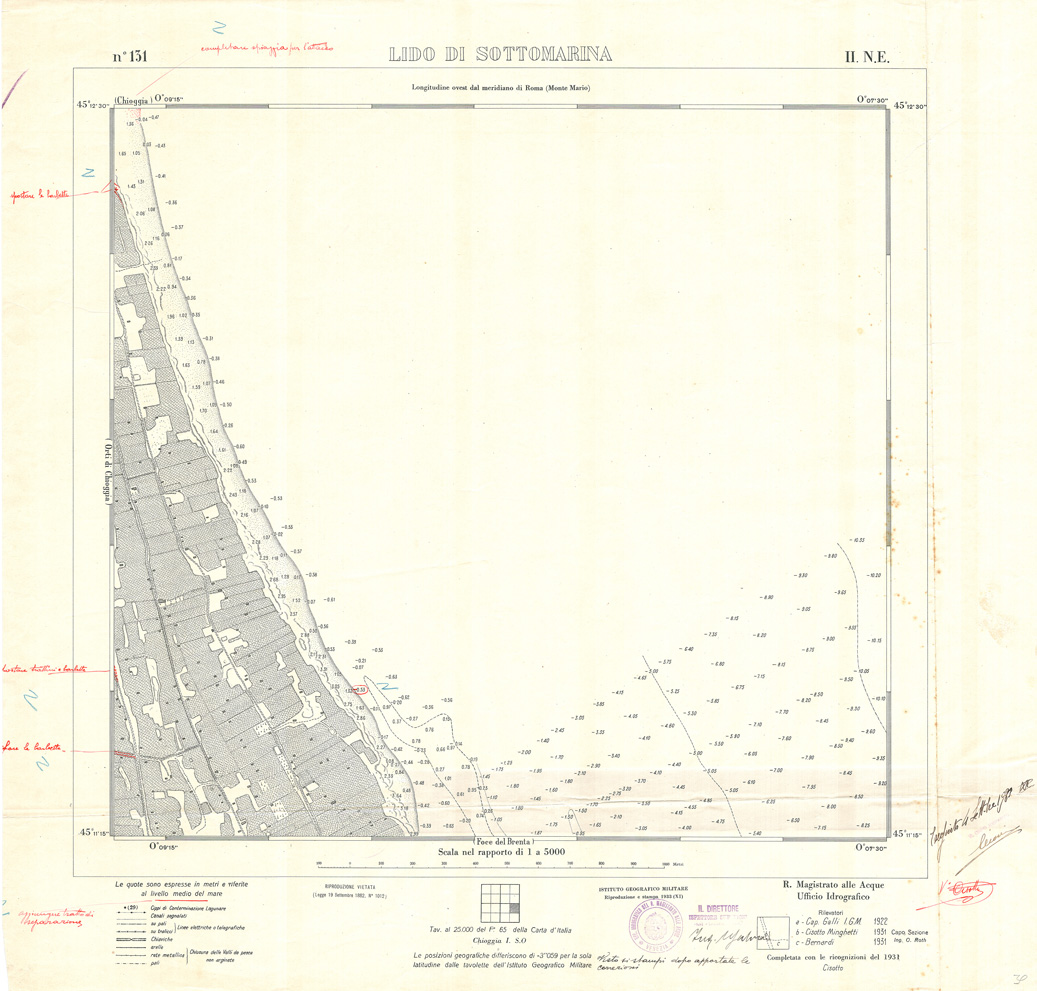 "Carta prodotta e stampata dall' IGM negli anni dal 1932 al 1934 su rilievi eseguiti dall' Ufficio Idrografico del Magistrato delle Acque negli anni dal 1921 al 1933"