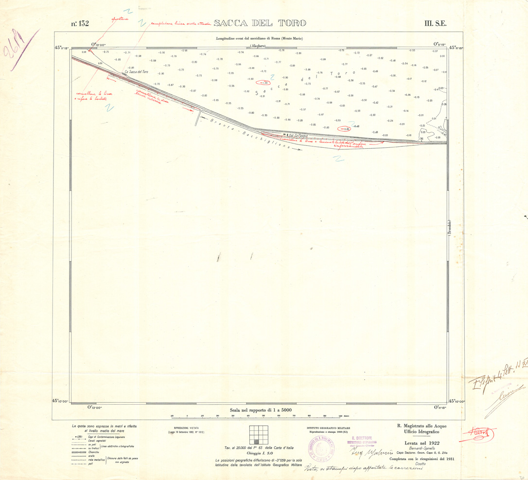 "Carta prodotta e stampata dall' IGM negli anni dal 1932 al 1934 su rilievi eseguiti dall' Ufficio Idrografico del Magistrato delle Acque negli anni dal 1921 al 1933"
