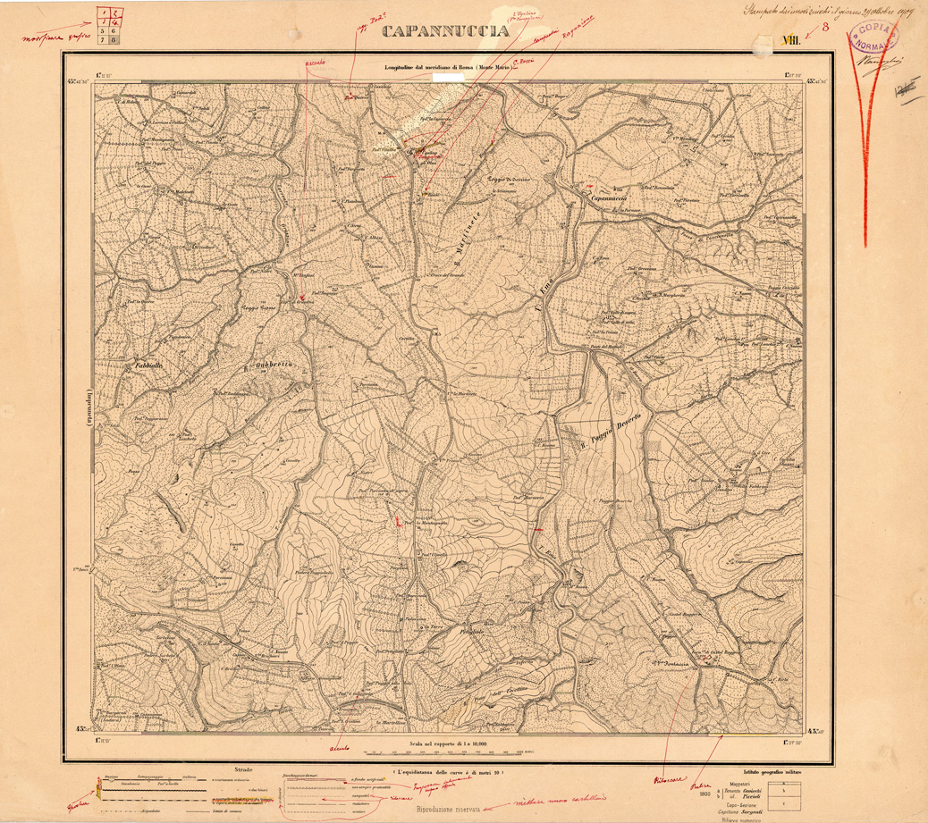I rilevamenti topografici per la realizzazione della “Carta d´Italia&lrquo” iniziarono nel 1878: si trattava di un´opera così importante e lodevole che meritò la consapevole attenzione, non solo degli addetti ai lavori e delle categorie professionali coinvolte, ma anche delle più alte autorità del Regno.