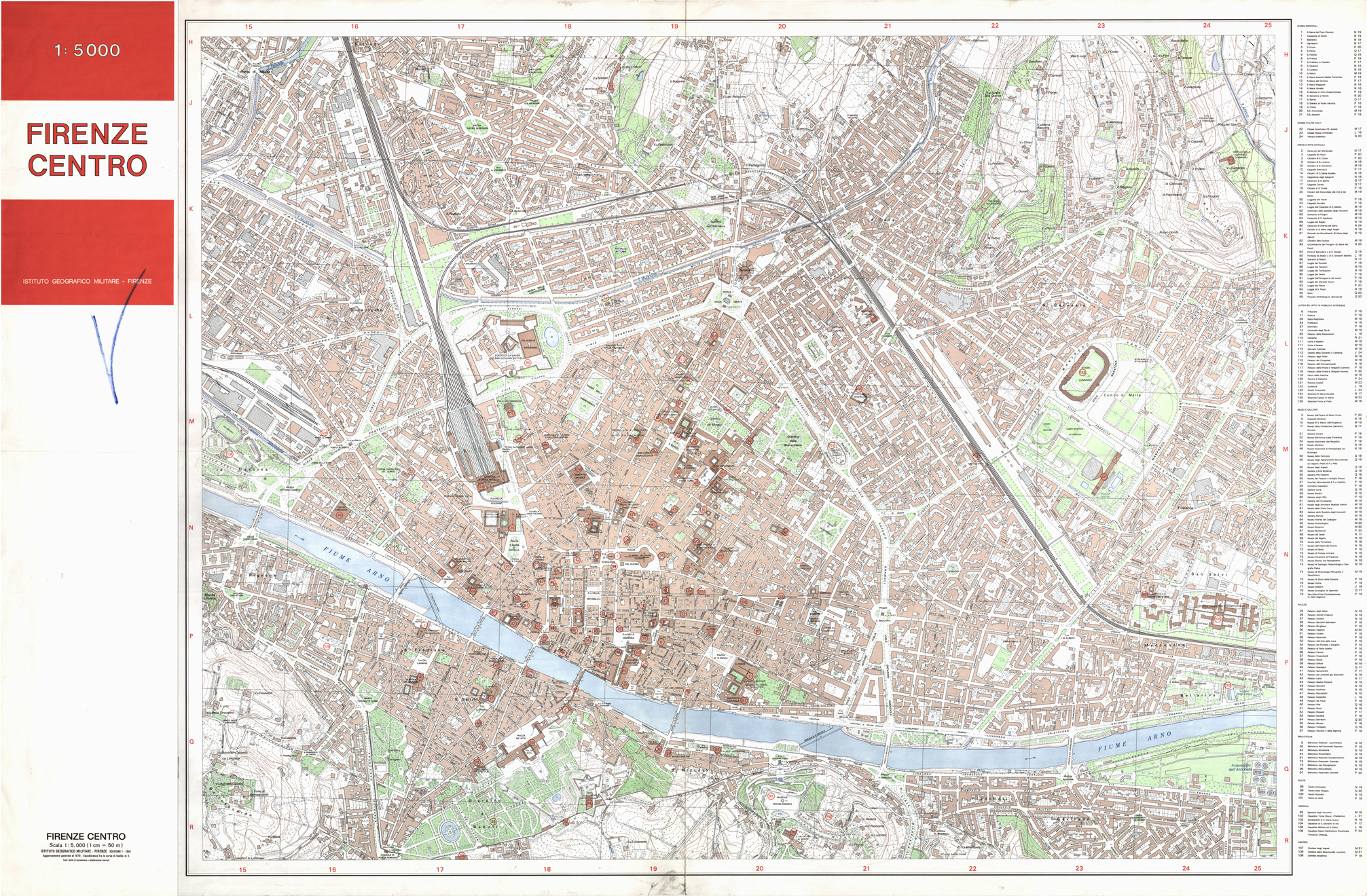 "Carta facente parte anche, insieme alle carte Firenze Est e Firenze Ovest alla scala di 1:10.000 ( file SE007098 SE007100 ) Firenze e dintorni alla scala di 1:25.000 ( file SE007122 ) e ad un Repertorio dei Toponimi, del Trittico di Firenze 1° edizione, serie cartografica edita dall' IGM nel 1981"