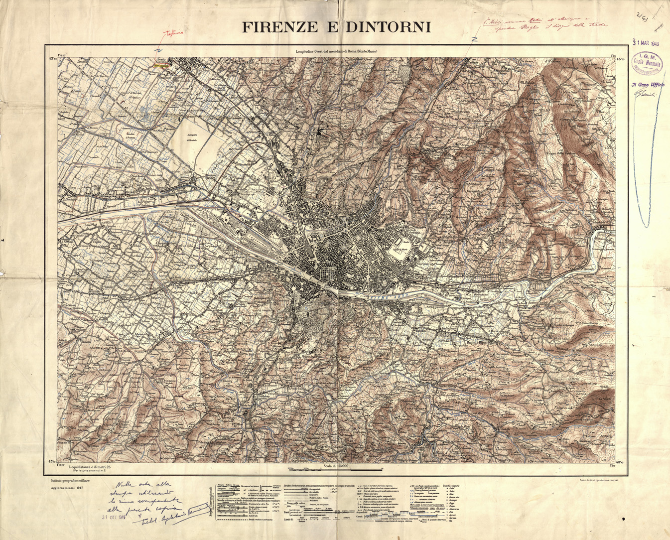 Esaurita la copertura cartografica delle nuove regioni, l´Istituto riprese, nel 1927, la graduale sostituzione delle prime 'levate' alla scala 1:50000 con i nuovi rilevamenti di maggior dettaglio alla scala 1:25000.
