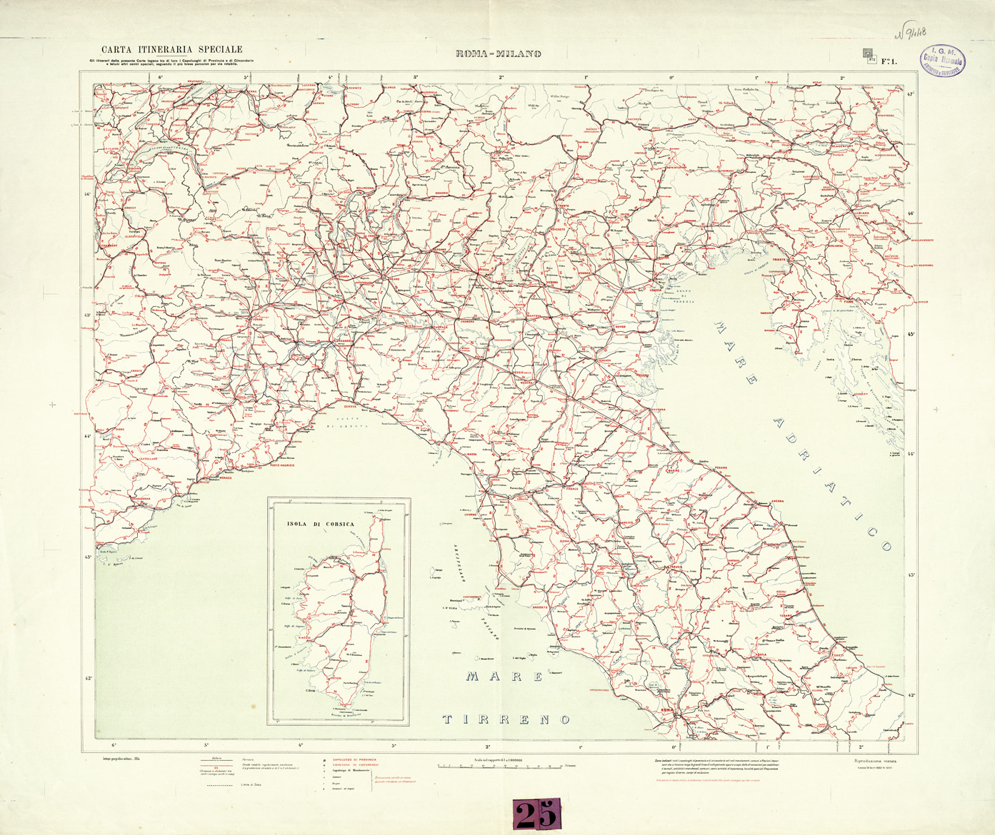 CARTA ITINERARIA SPECIALE DELL'ITALIA - ROMA - MILANO - FOGLIO 1.