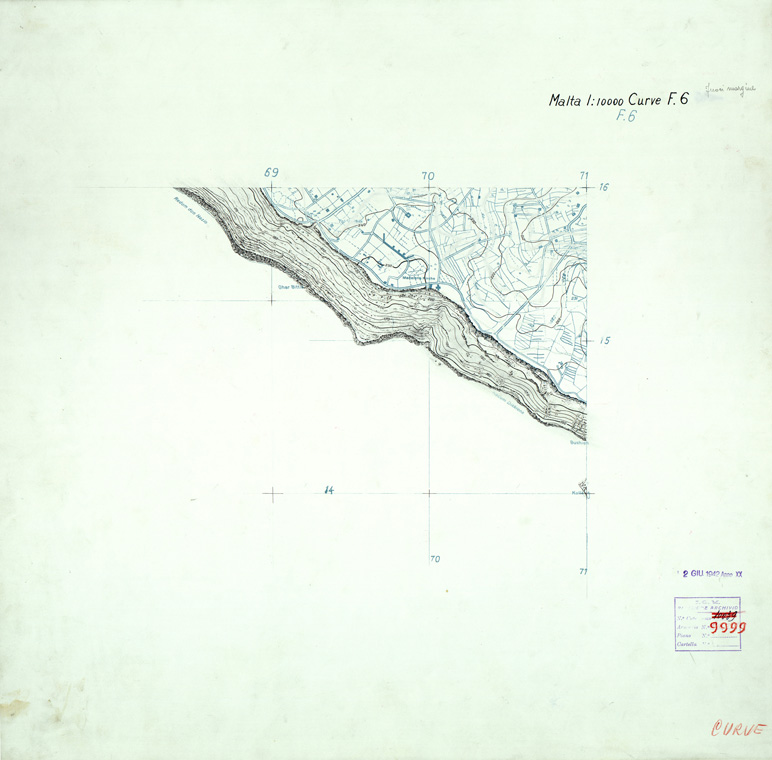"Compilata dalla carta Tedesca dell' Isola di Malta alla scala di 1:10.000 del 1941. Originali a colori separati più copia di prova a colori riuniti con note di revisione."