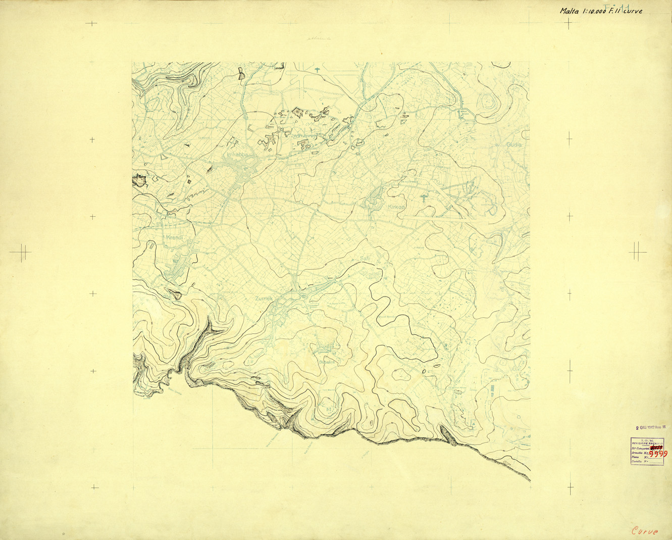 "Compilata dalla carta Tedesca dell' Isola di Malta alla scala di 1:10.000 del 1941. Originali a colori separati più copia di prova a colori riuniti con note di revisione."