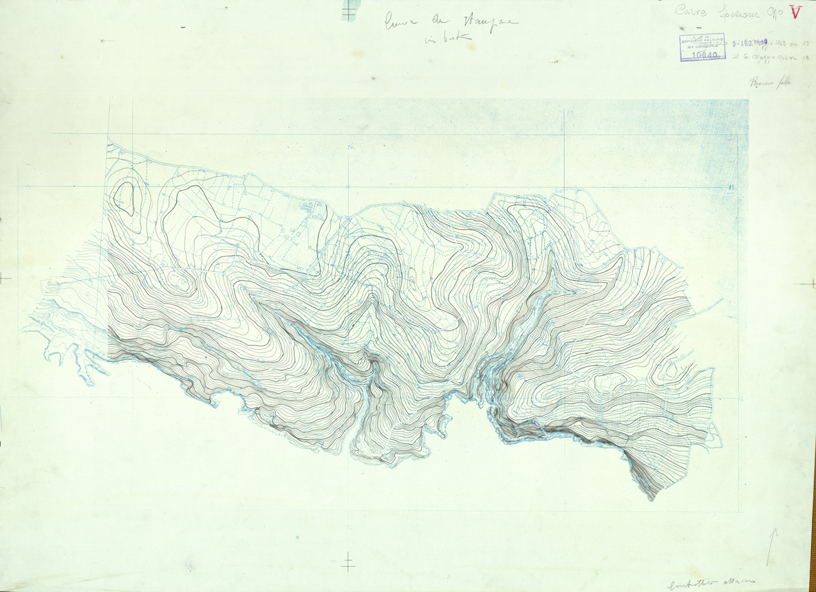 "Originali a colori separati ( Planimetria e Acque - Curve ) disegnati a penna su cartoncino."