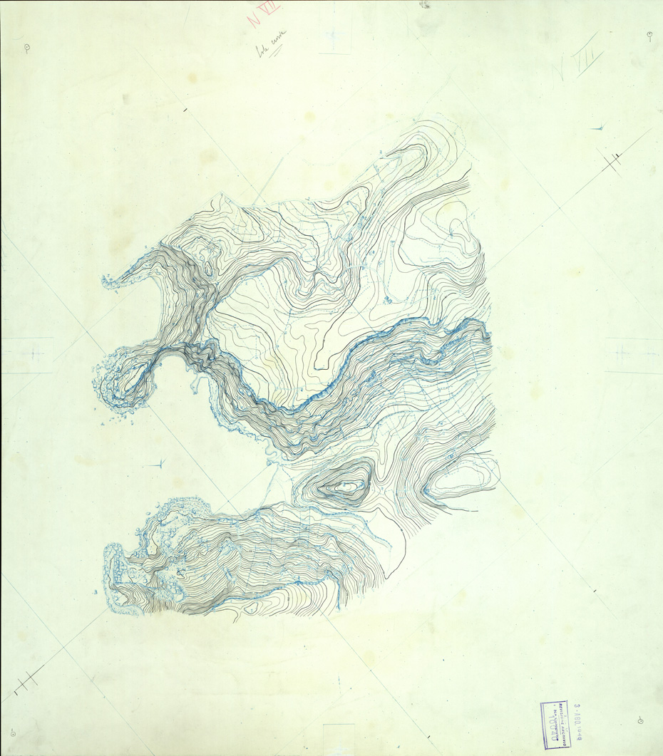 "Originali a colori separati ( Planimetria e Acque - Curve ) disegnati a penna su cartoncino."