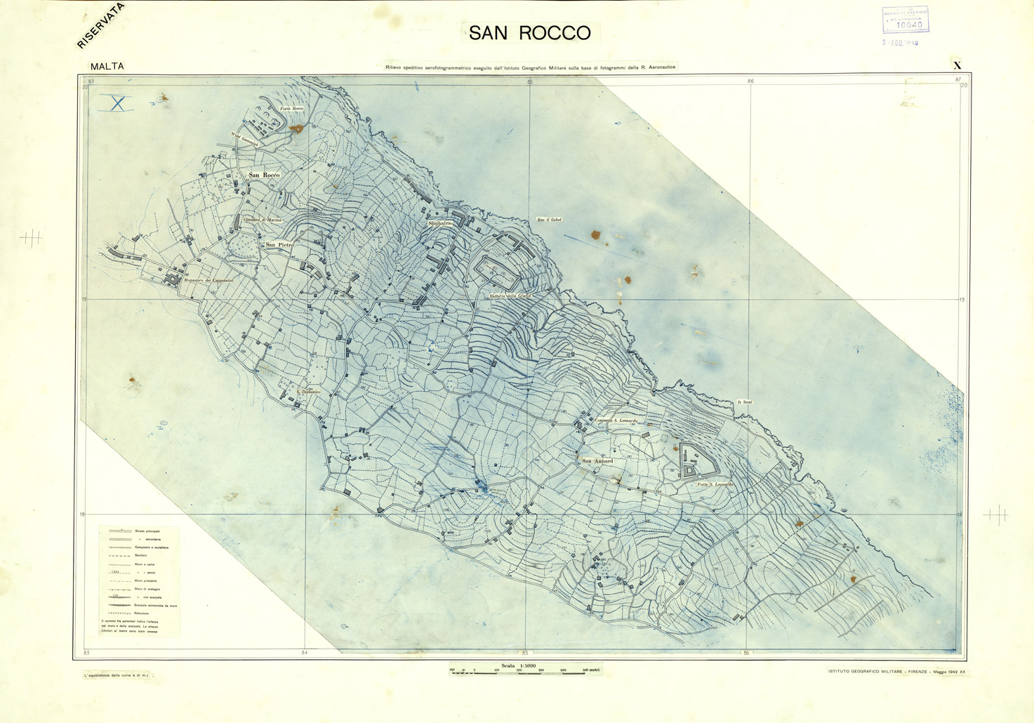 MALTA - FOGLIO X - SAN ROCCO - ORIGINALI - PLANIMETRIA E ACQUE