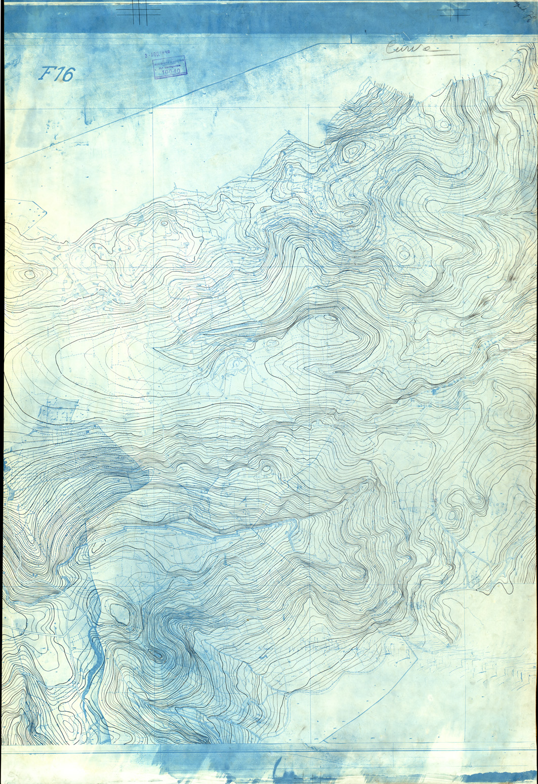"Originali a colori separati ( Planimetria e Acque - Curve ) disegnati a penna su cartoncino."