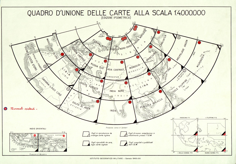 La riproduzione speditiva delle levate originali fu poi seguita dalla pubblicazione della carta artisticamente finita: 271 fogli alla scala 1:100000 che comprendevano l'intero territorio italiano
