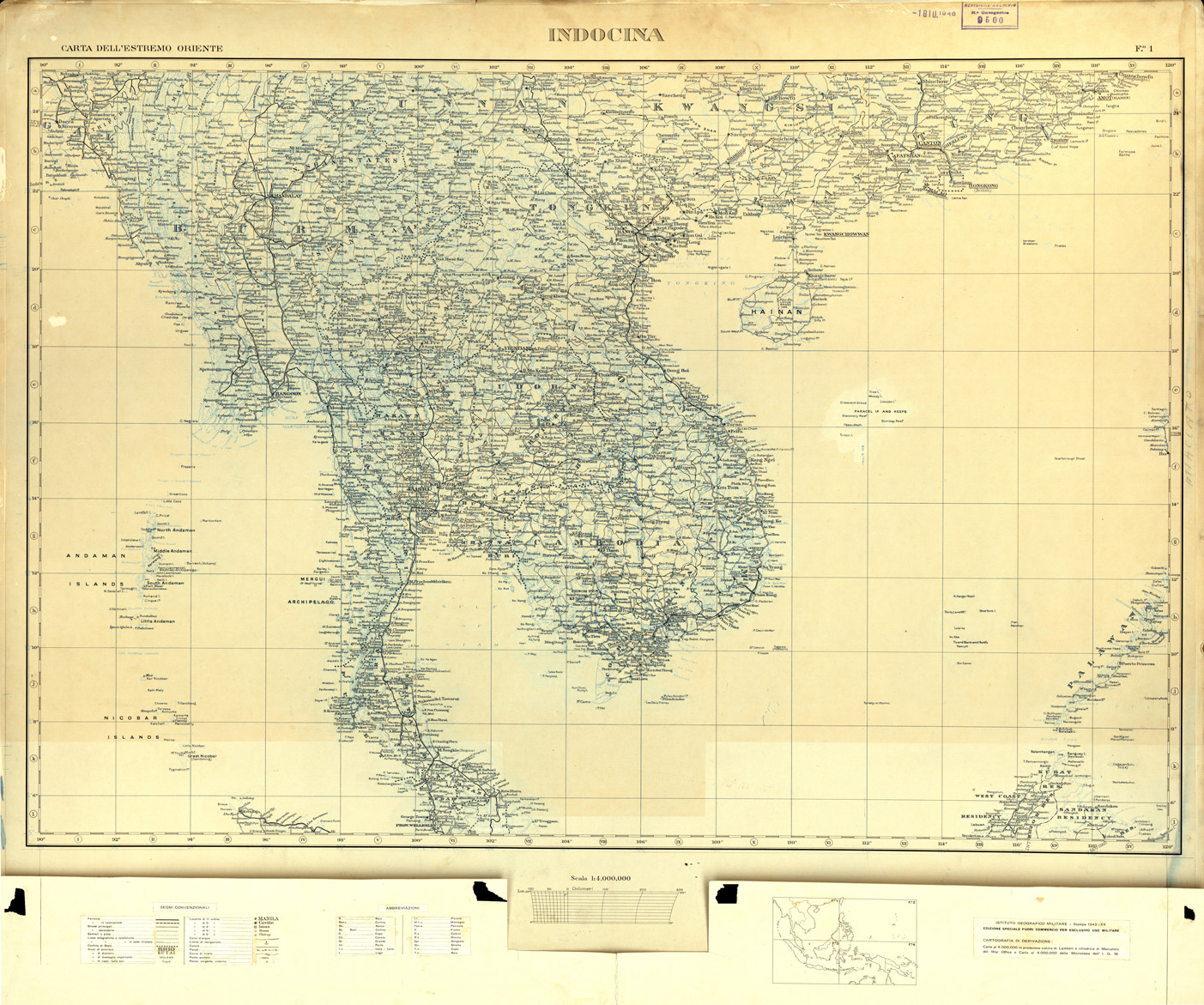 ESTREMO ORIENTE - FOGLIO 1 INDOCINA. ORIGINALI A COLORI SEPARATI. NERO