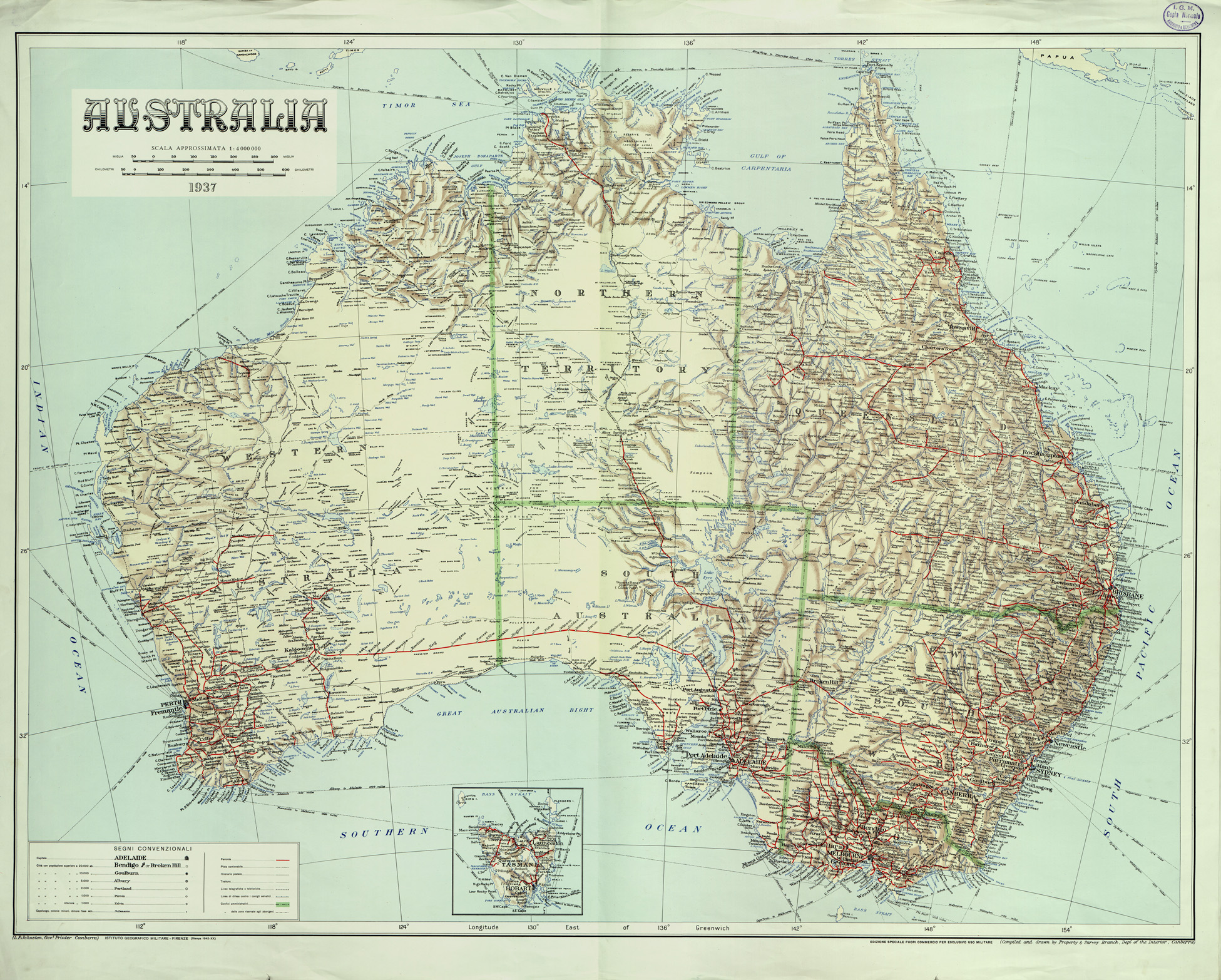 "Carta compilata nel 1937 dal dipartimento dell' interno di Canberra, riprodotta dall IGM e stampata nel 1942"