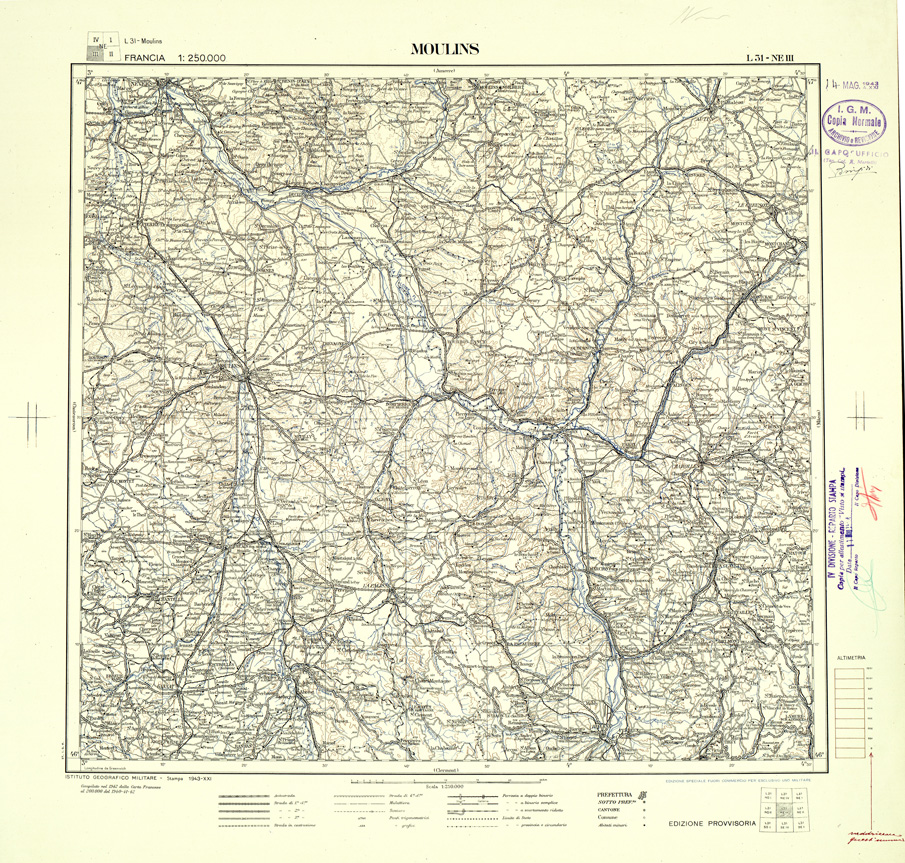 "Carta compilata nel 1942 - 1943 dalla divisione cartografica dell' IGM, fonte di compilazione la carta Francese al 200.000"