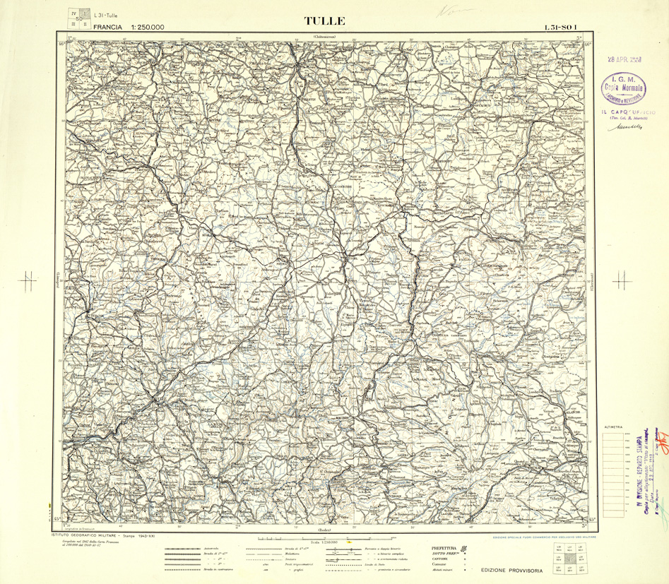 "Carta compilata nel 1942 - 1943 dalla divisione cartografica dell' IGM, fonte di compilazione la carta Francese al 200.000"