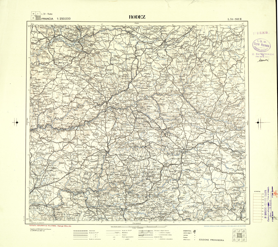 "Carta compilata nel 1942 - 1943 dalla divisione cartografica dell' IGM, fonte di compilazione la carta Francese al 200.000"