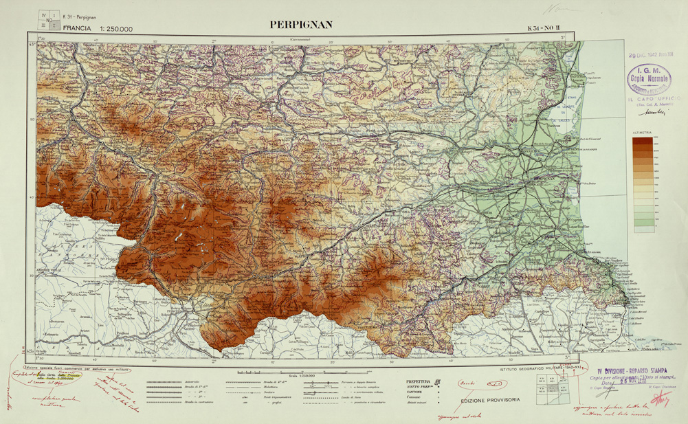 "Carta compilata nel 1942 - 1943 dalla divisione cartografica dell' IGM, fonte di compilazione la carta Francese al 200.000"