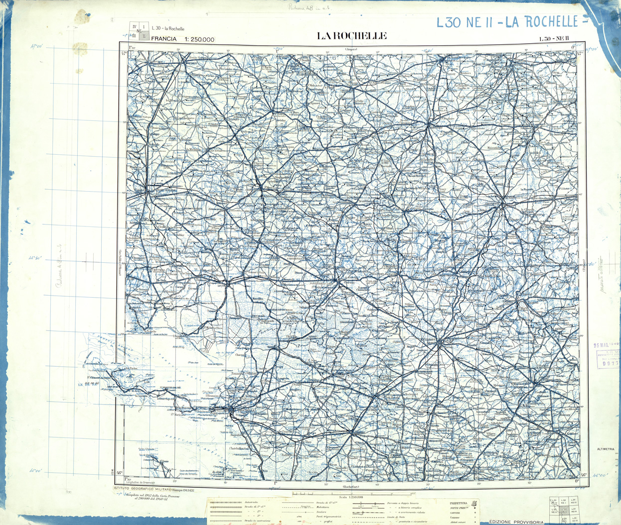 "Originali a colori separati alla scala di 1:200.000 realizzati per l' allestimento della carta della Francia alla scala di 1:250.000"
