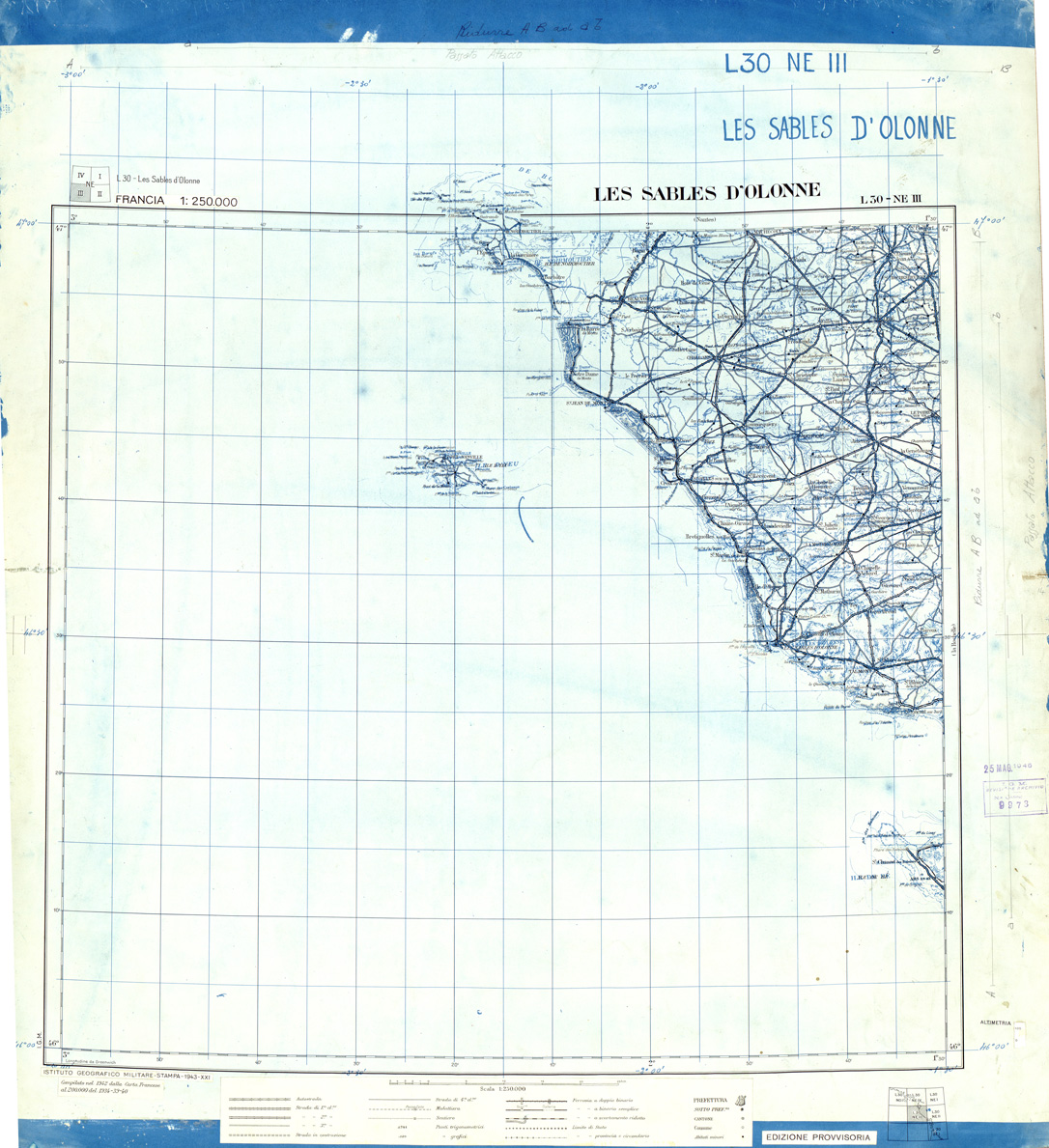 "Originali a colori separati alla scala di 1:200.000 realizzati per l' allestimento della carta della Francia alla scala di 1:250.000"