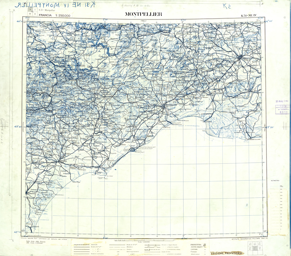 "Originali a colori separati alla scala di 1:200.000 realizzati per l' allestimento della carta della Francia alla scala di 1:250.000"