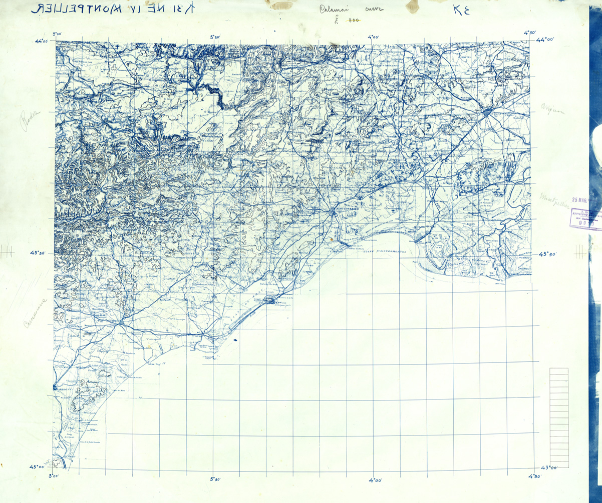 "Originali a colori separati alla scala di 1:200.000 realizzati per l' allestimento della carta della Francia alla scala di 1:250.000"