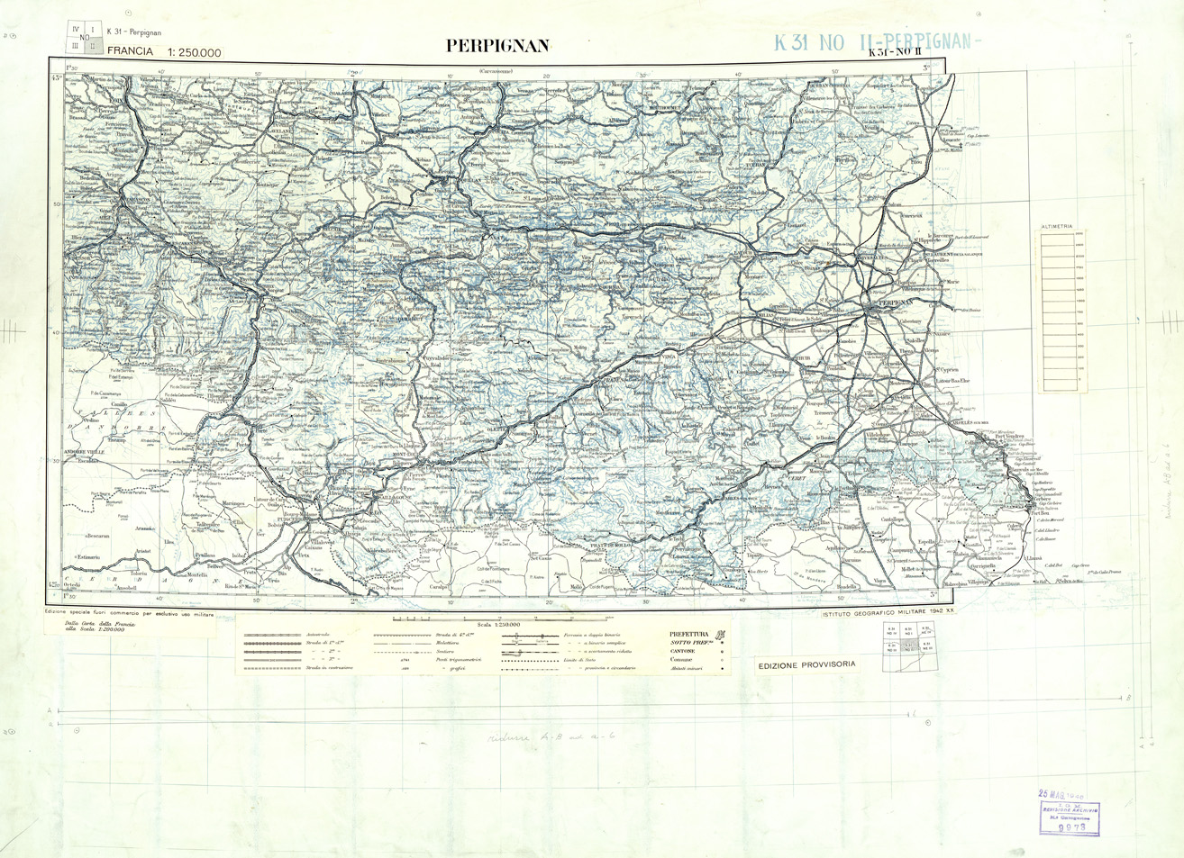 "Originali a colori separati alla scala di 1:200.000 realizzati per l' allestimento della carta della Francia alla scala di 1:250.000"