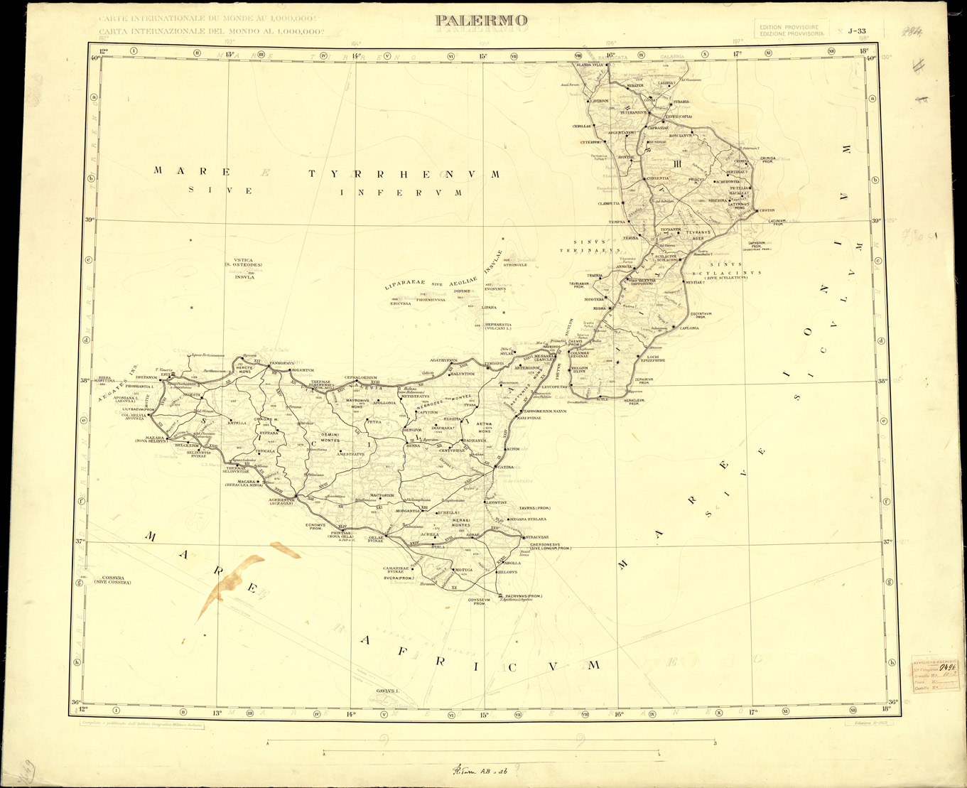 "Al congresso Geografico Internazionale di Cambridge e precisamente nella seduta del 18 luglio 1928, fu proposta dal rappresentante dell'Italia, la realizzazione di una Carta Internazionale dell'Impero Romano. Tale progetto fu approvato nel 1929, in riunione tenutasi a Firenze. Fu stabilito che la carta avrebbe avuto le stesse caratteristiche di quella Internazionale al Milionesimo, solita numerazione e reticolato per coprire la superficie dell'Impero Romano al tempo della sua massima estensione. La compilazione della carta fu affidata a diversi stati, l'Italia ebbe il compito di eseguire i f° : L 32 Milano L 33 Trieste K 32 Firenze K 33 Roma J 33 Palermo. Gli originali sono disegnati in nero, alla scala di 1:750.000, per la riduzione ad 1:1.000.000. Tale carta fu pubblicata a colori con tinte ipsometriche, come per la Carta Internazionale al Milionesimo, mentre per la toponomastica si avvalsero della lingua Latina. Il f° di Roma fu iniziato nel 1930 e pubblicato nel 1931 quello di Firenze nel 1934 e Palermo nel 1935. Per ulteriori notizie rimandiamo alla consultazione della rivista "L'Universo" anno 1931, fascicolo 12."