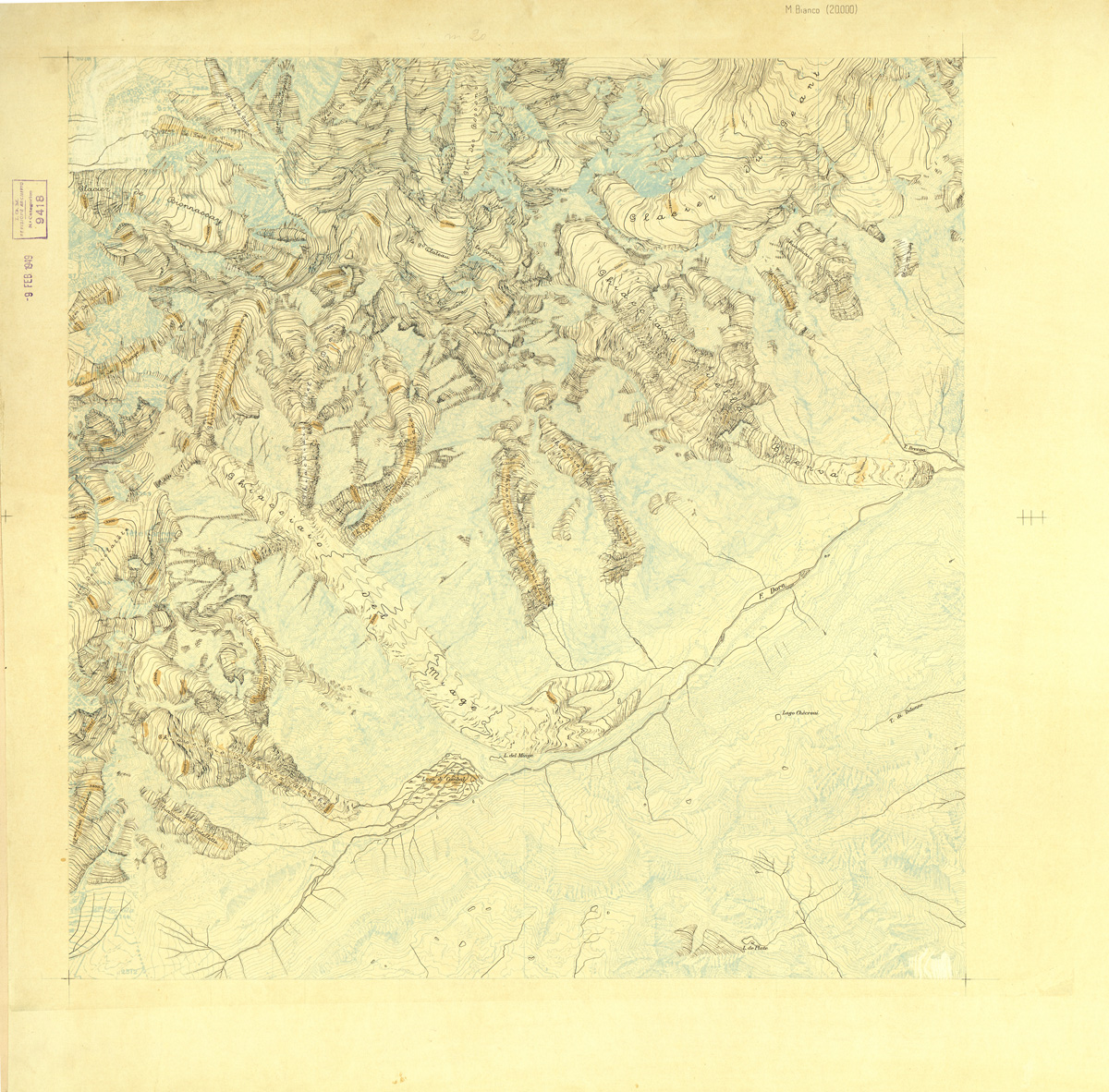 "Nel 1947 la direzione I.G.M. decise il rifacimento della parte artistica d'alta montagna delle tavolette del Monte Bianco e la Vachey rilevate nel 1929. La missione fu composta dal topografo capo Filippo Cantarini, dal ten. col. Cecioni e dal disegnatore restitutista Tordelli. Furono eseguite ex novo 12 stazioni fotogrammetriche terrestri per la ripresa fotografica della catena del m. Bianco, dal colle della Seigne al colle du Grand Ferret e zone interne di angolo morto quali i bacini del ghiacciaio du Dame e del Triolet. Venne restituita ex novo, tramite un mod. III Santoni, la zona del versante italiano,dal gruppo del m. Bianco al colle della Seigne, fino al Grand Ferret, realizzando dapprima la morfologia dei gruppi rocciosi tramite le curve di livello, mentre successivamente, furono eseguite le due tavolette secondo il nuovo criterio del disegno a 3 colori, cioe' con il nero: disegno a tratteggio dei gruppi rocciosi, ghiaioni, planimetria, nomi e quote. con il blu': idrografia, curve di livello sui ghiacciai e loro rappresentazione artistica compresi crepacci. con tonalita' bistro: le curve di livello, scarpate e frane. Per la tav. Courmayeur fu aggiornata la planimetria e per il versante francese venne utilizzata la carta del Vallot eseguita con fotogrammetria terrestre nel 1939."