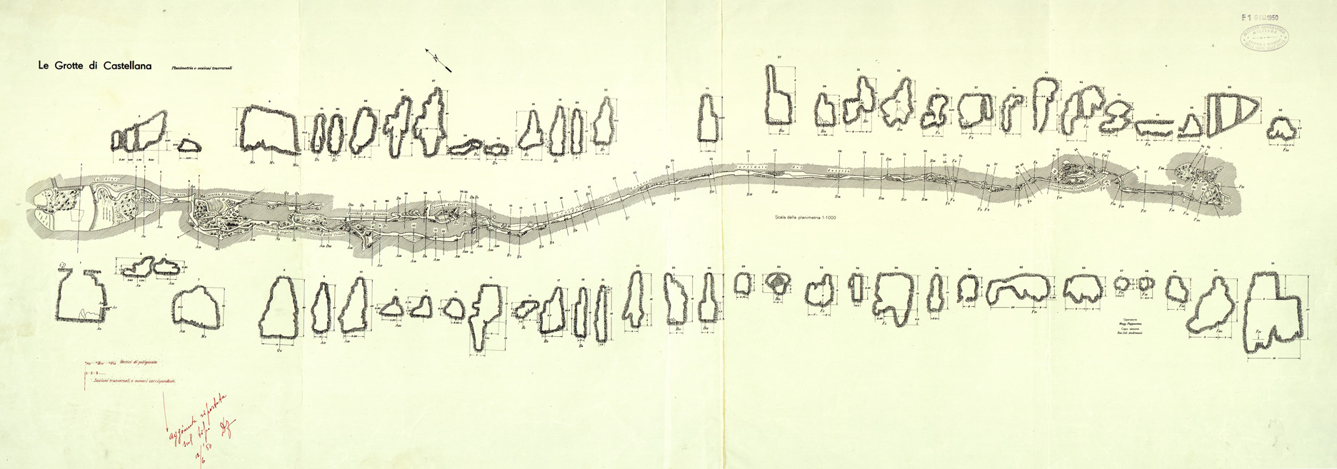 LE GROTTE DI CASTELLANA - PLANIMETRIA E SEZIONI TRASVERSALI