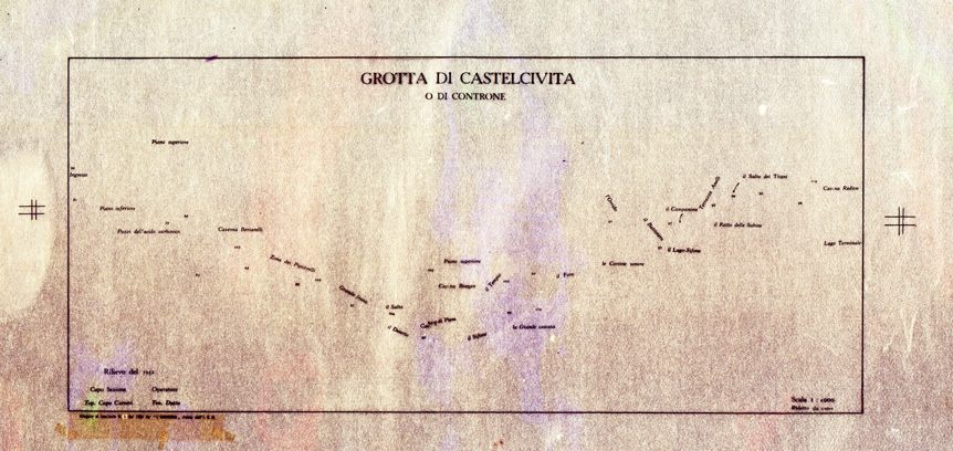 "Castelcivita e Controne,abbarbicate sulle pendici occidentali dell'Alburno, si contendono la priorita' di diritto sulla grotta, che, pur essendo nel sottosuolo di Castelcivita, ha l'accesso da Controne. F° 198 II NO. "La Caverna del Principe di Piemonte,una vera cupola su cui si affacciano le Cariatidi..." vedi " L'Universo" n° 5 anno 1954, Cap. Bartolomeo Dutto, dell' I.G.M."