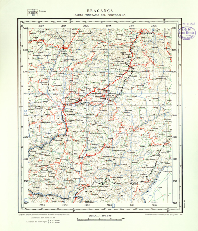 "Riproduzione da analoga carta del servizio cartografico dello stato maggiore dell' esercito Portoghese del 1937."