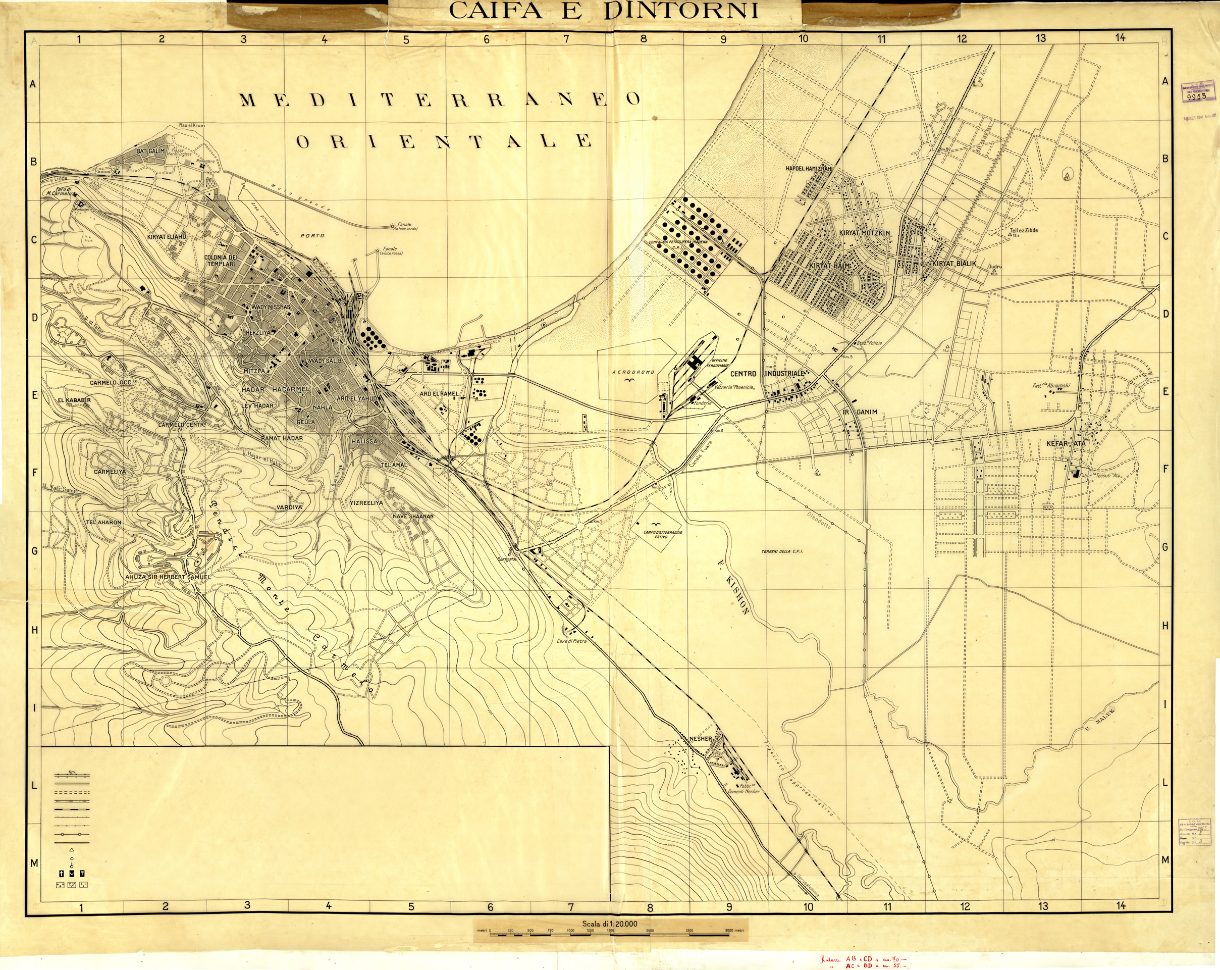 "Originale disegnato a penna su carta lucida per l' allestimento della carta di Caifa e dintorni allla scala di 1:20.000 ( File SE007892 )"