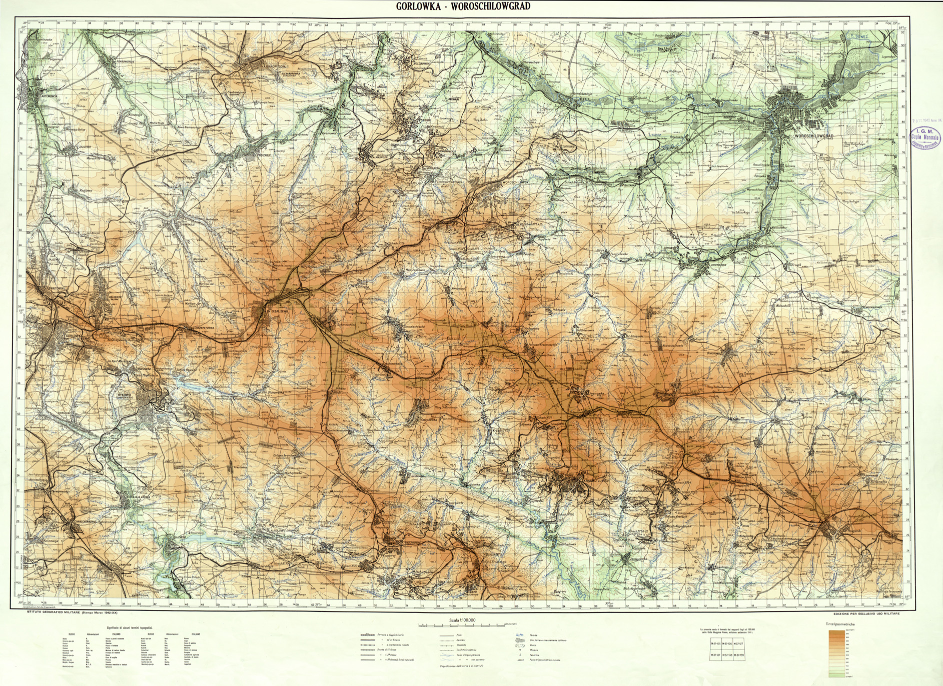 "Carta realizzata dalla divisione cartografica dell' IGM pubblicata nel 1942, gli originali divisi in 2 parti Est e Ovest furono ricavati dalla carta Russa alla stessa scala del 1940 - 1941 aggiornati per i centri abitati di Rykowo e Debalizewo con fotografie aeree fornite dall' aeronautica Tedesca."