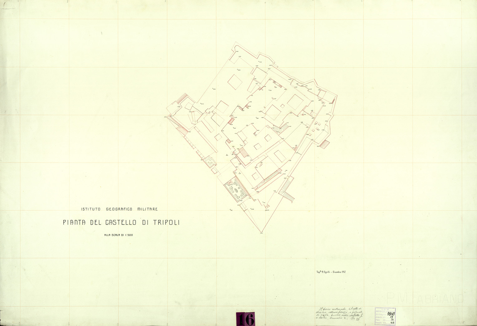 PIANTA DEL CASTELLO DI TRIPOLI - ORIGINALI A COLORI SEPARATI - PLANIMETRIA
