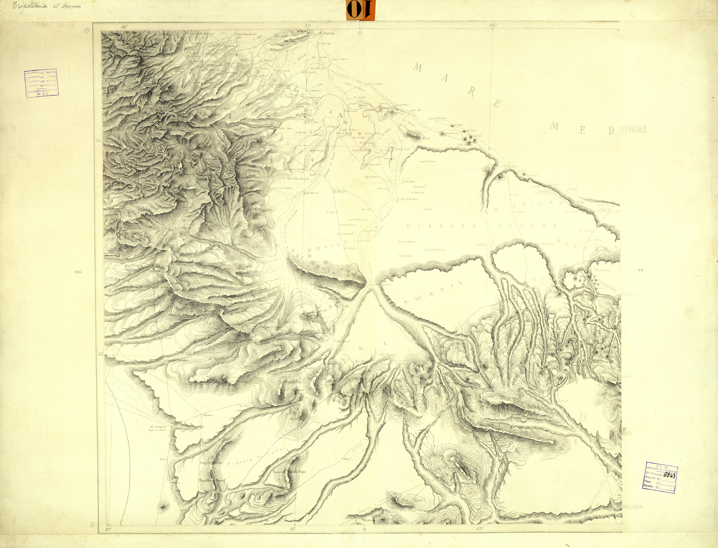 "Carta del territorio della Tripolitania fra la costa ed il Gebel e tra il confine Tunisino e Misurata, divisa in 2 fogli Est e Ovest, compilata e disegnata tra il 1887 e il 1888 è una delle carte generali allestite dall' IGM sui migliori documenti utilizzabili all' epoca degli avvenimenti che portarono alla guerra Libica, gli originali sono disegnati su cartone, 1 per la planimetria e toponomastica e 1 per l' orografia."