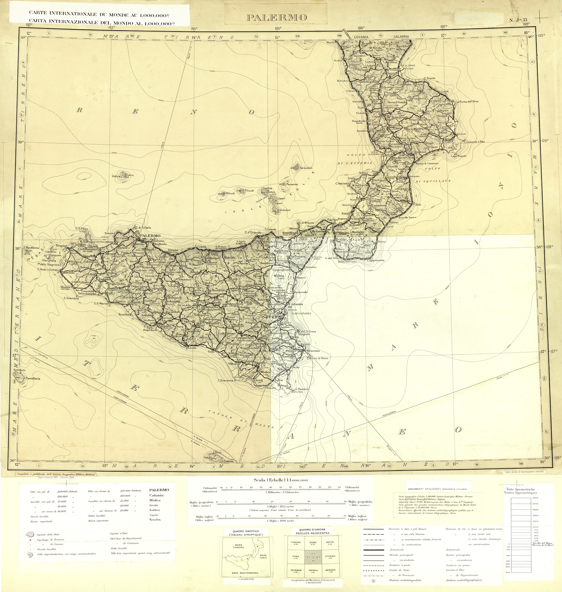 CARTA INTERNAZIONALE DEL MONDO FOGLIO J 33 PALERMO ORIGINALE