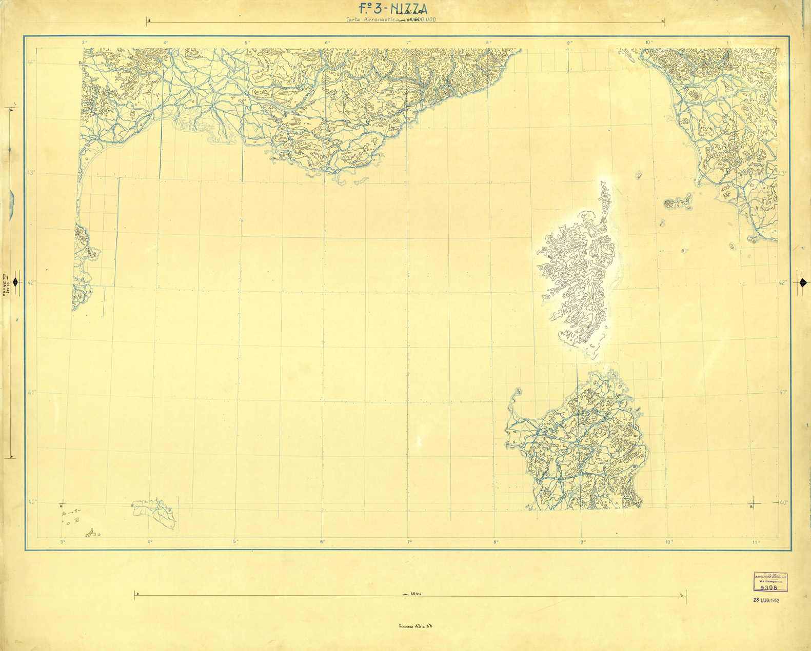 CARTA AERONAUTICA DEL MONDO FOGLIO 2320 MARSEILLE ORIGINALI A COLORI SEPARATI CURVE