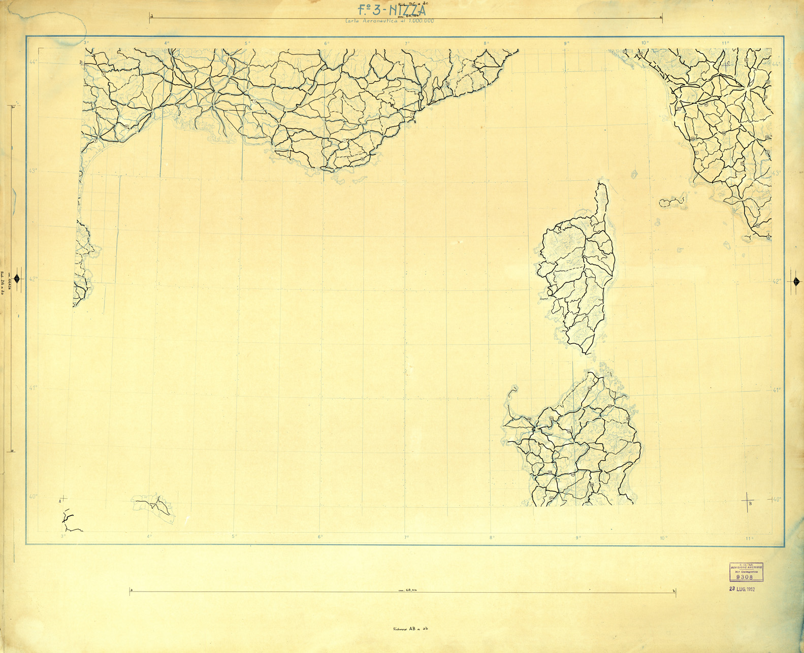 CARTA AERONAUTICA DEL MONDO FOGLIO 2320 MARSEILLE ORIGINALI A COLORI SEPARATI STRADE