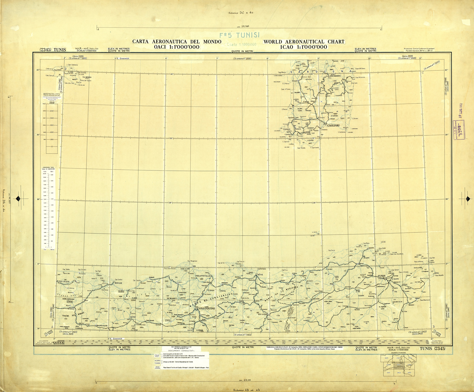 CARTA AERONAUTICA DEL MONDO FOGLIO 2345 TUNISI ORIGINALI A COLORI SEPARATI NERO