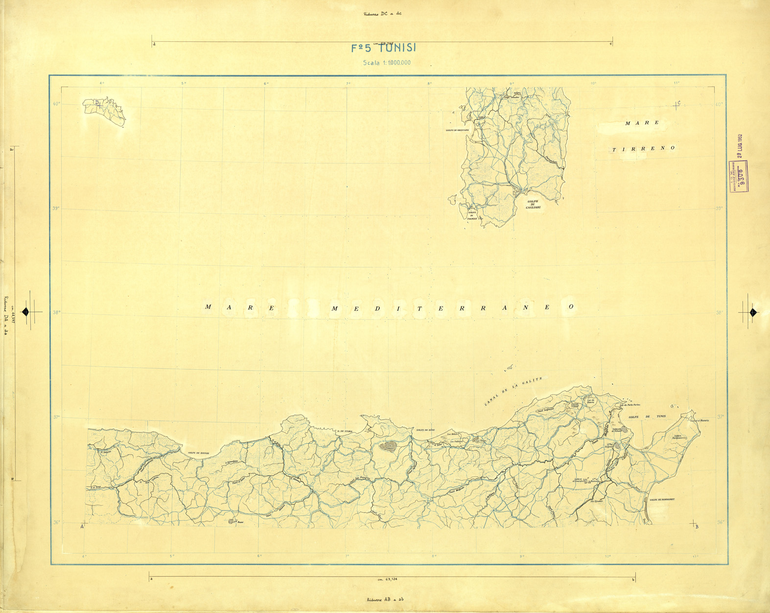 CARTA AERONAUTICA DEL MONDO FOGLIO 2345 TUNISI ORIGINALI A COLORI SEPARATI ACQUE