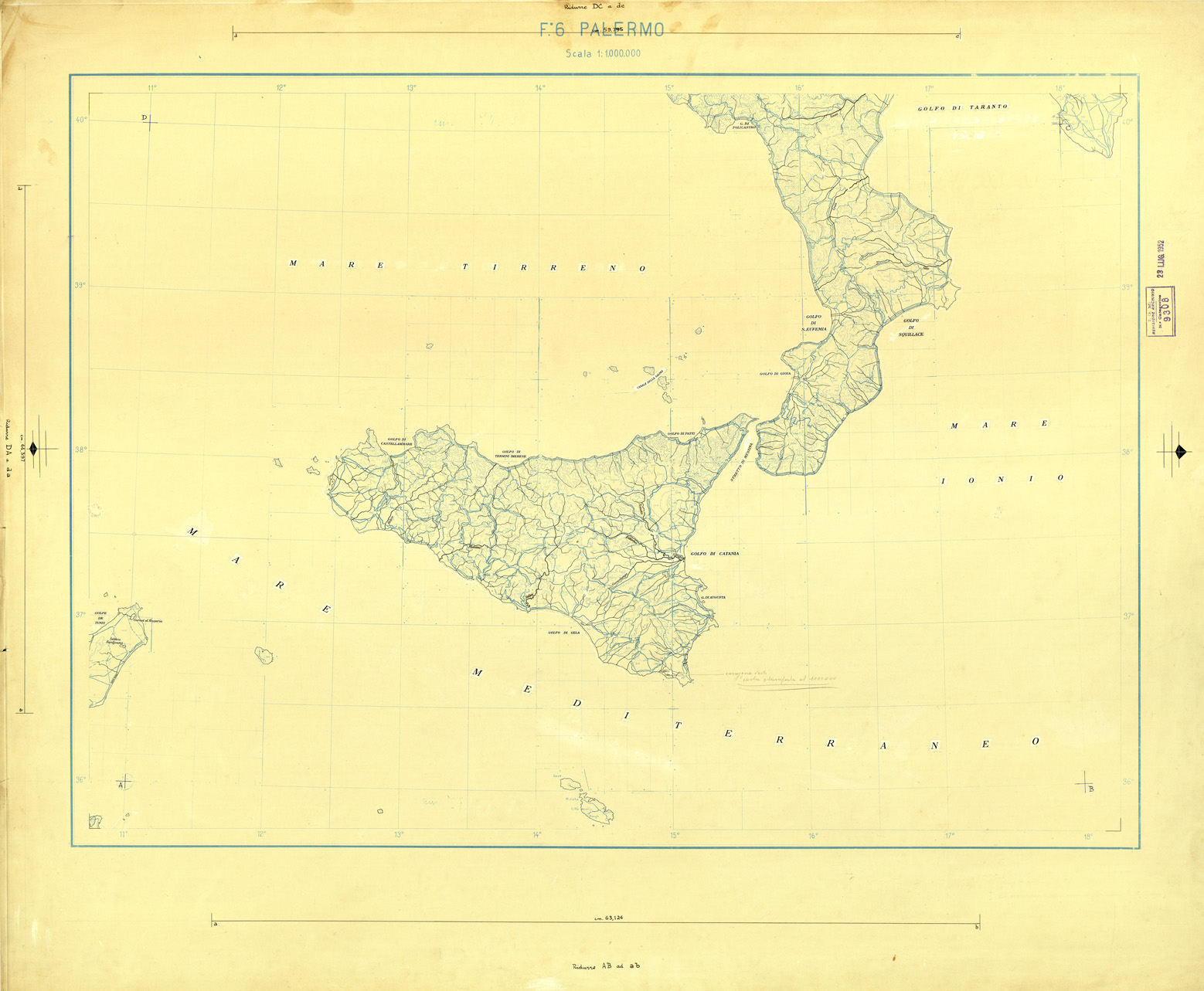 CARTA AERONAUTICA DEL MONDO FOGLIO 2344 SICILIA ORIGINALI A COLORI SEPARATI ACQUE