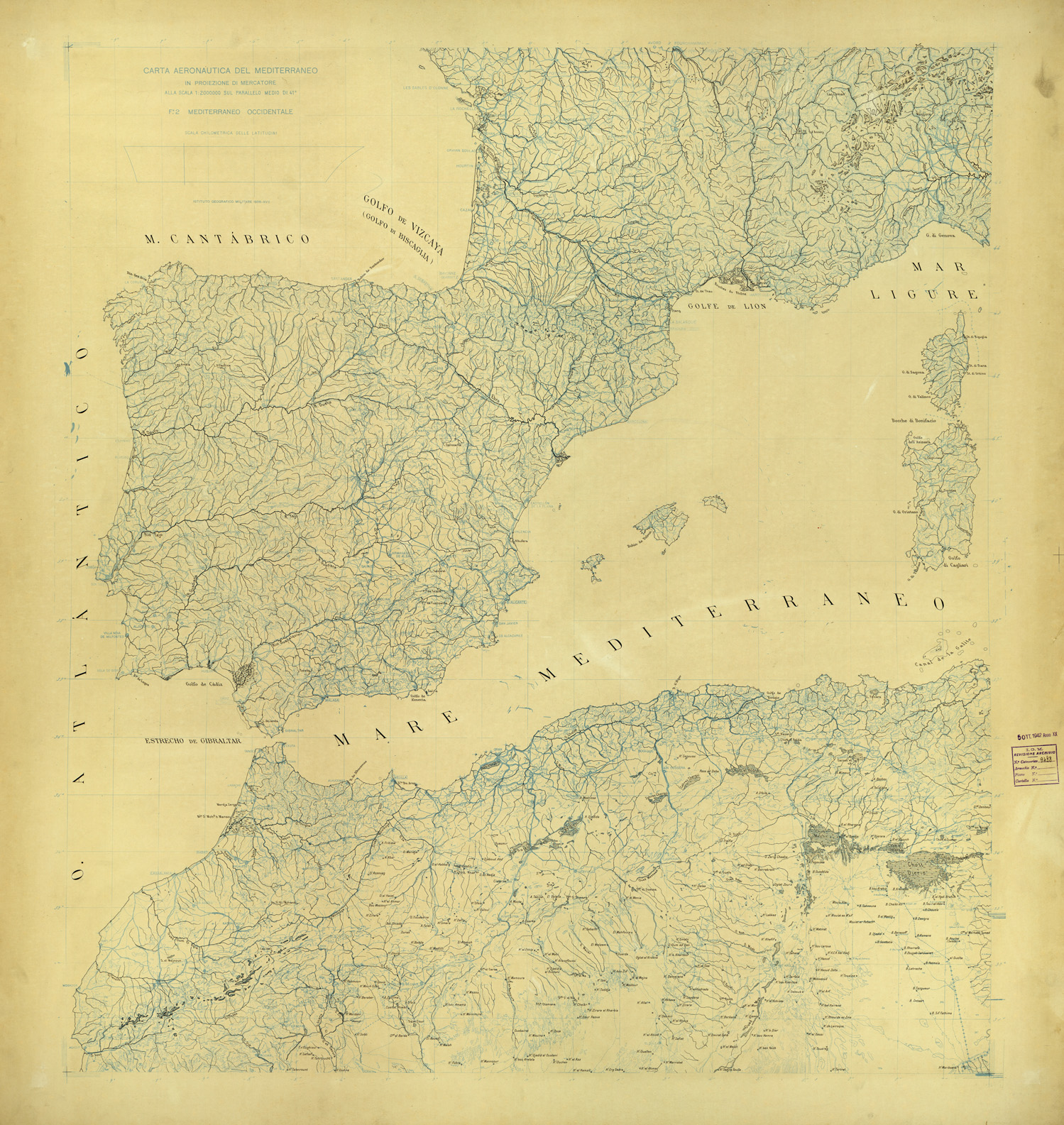 CARTA AERONAUTICA DEL MEDITERRANEO FOGLIO 2 MEDITERRANEO OCCIDENTALE ORIGINALI A COLORI SEPARATI IDROGRAFIA