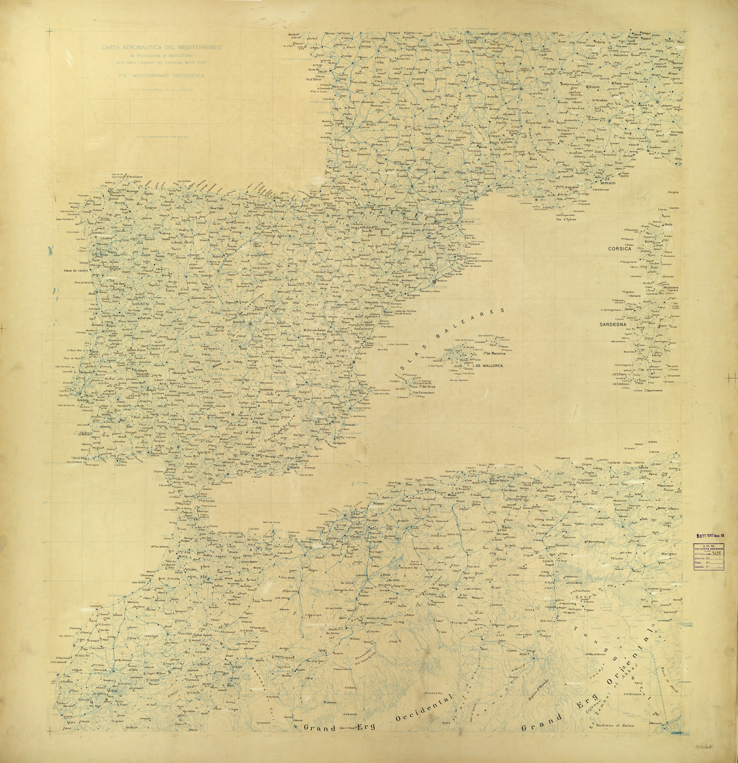 CARTA AERONAUTICA DEL MEDITERRANEO FOGLIO 2 MEDITERRANEO OCCIDENTALE ORIGINALI A COLORI SEPARATI TOPONOMASTICA