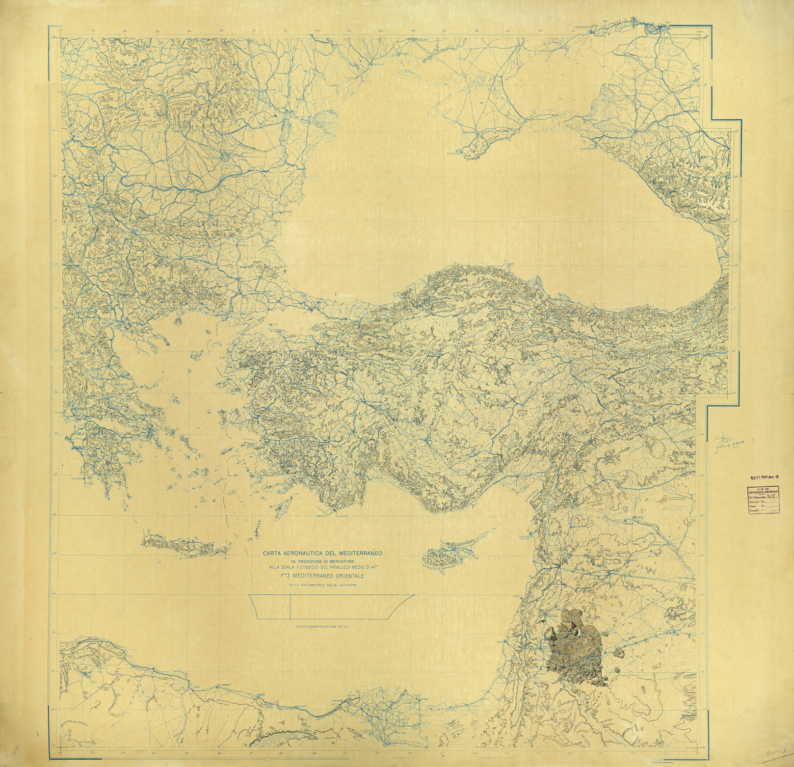 CARTA AERONAUTICA DEL MEDITERRANEO FOGLIO 3 MEDITERRANEO ORIENTALE ORIGINALI A COLORI SEPARATI CURVE DI LIVELLO