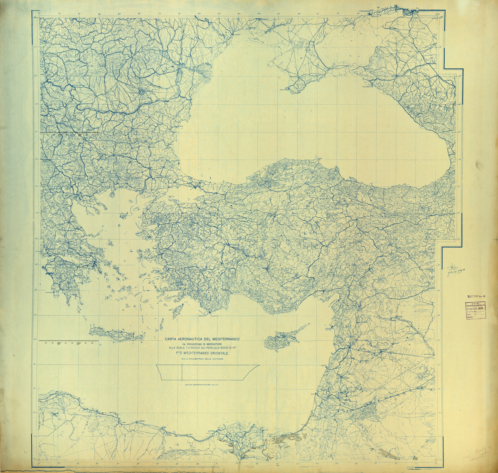 CARTA AERONAUTICA DEL MEDITERRANEO FOGLIO 3 MEDITERRANEO ORIENTALE ORIGINALI A COLORI SEPARATI VEGETAZIONE E QUOTE