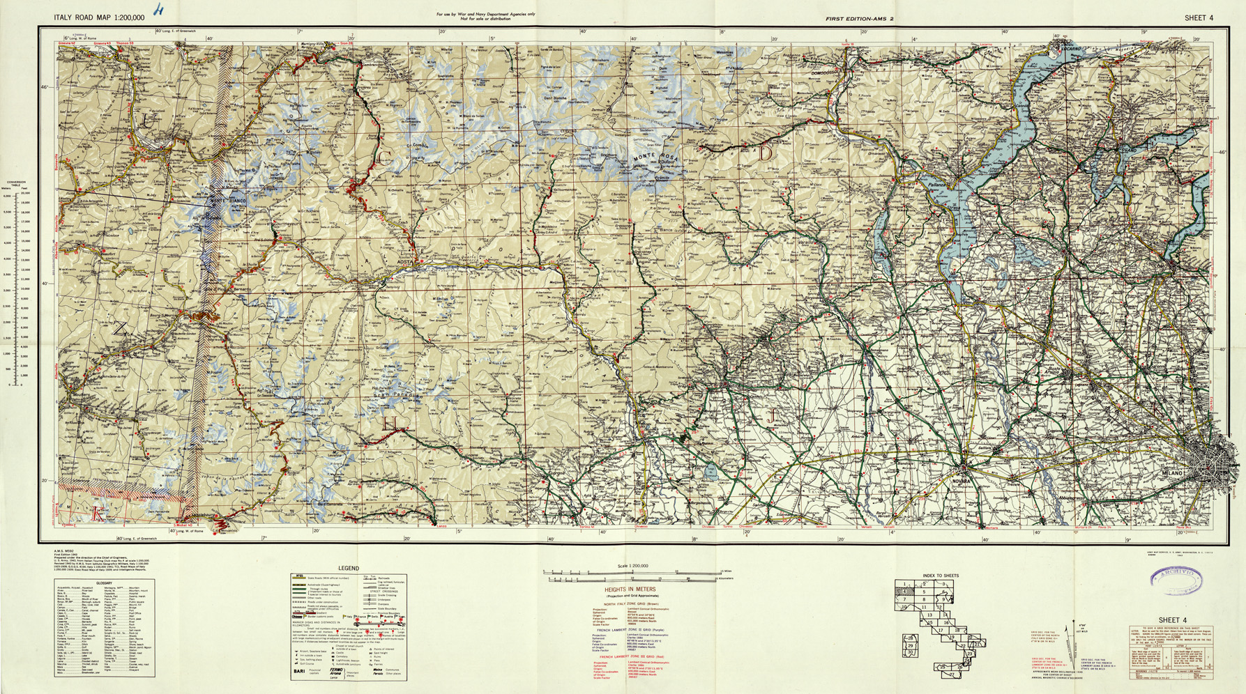 "Carta edita dall' Army Map Service Statunitense sulla base della Carta d' Italia al 200.000 del Touring Club Italiano."