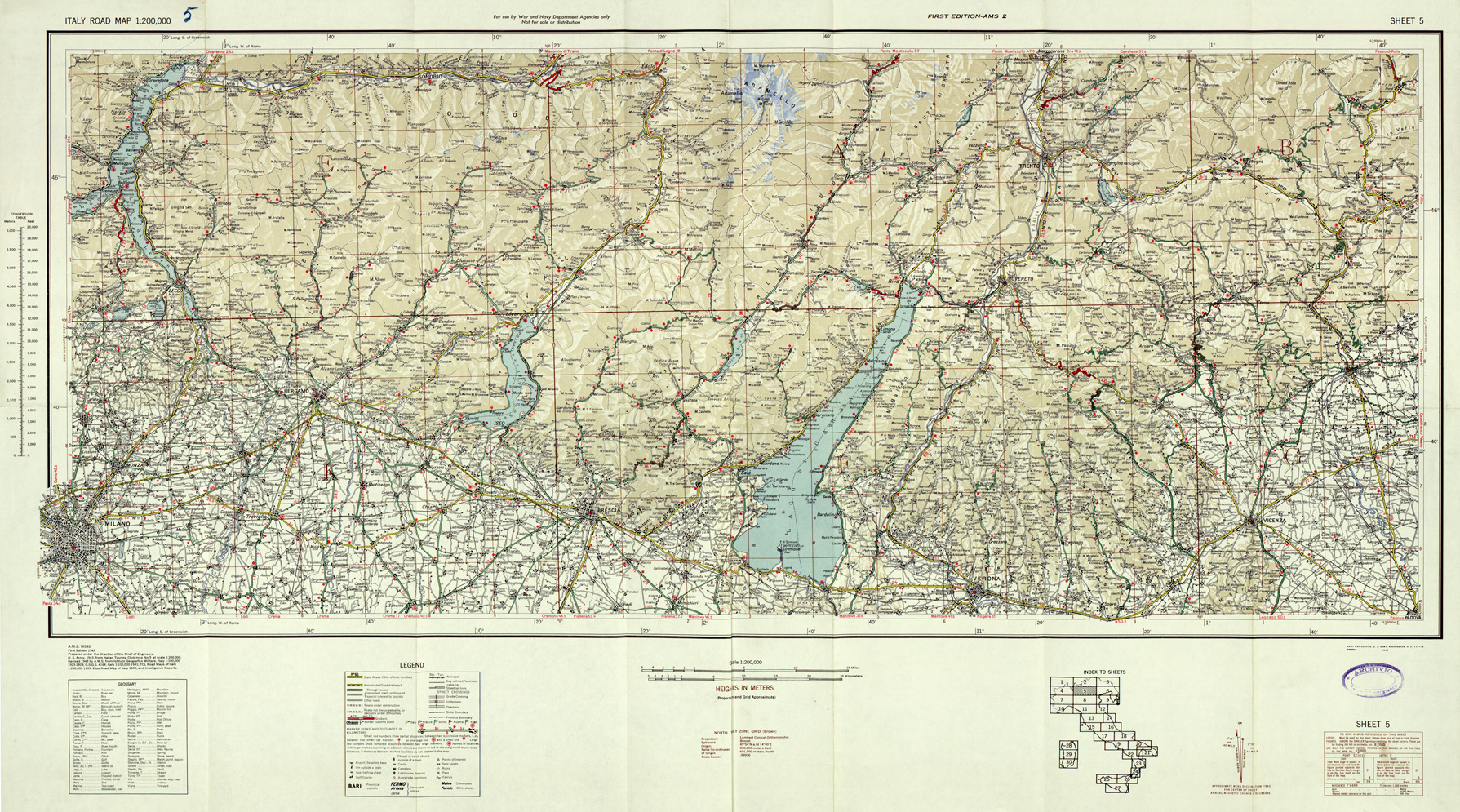 "Carta edita dall' Army Map Service Statunitense sulla base della Carta d' Italia al 200.000 del Touring Club Italiano."