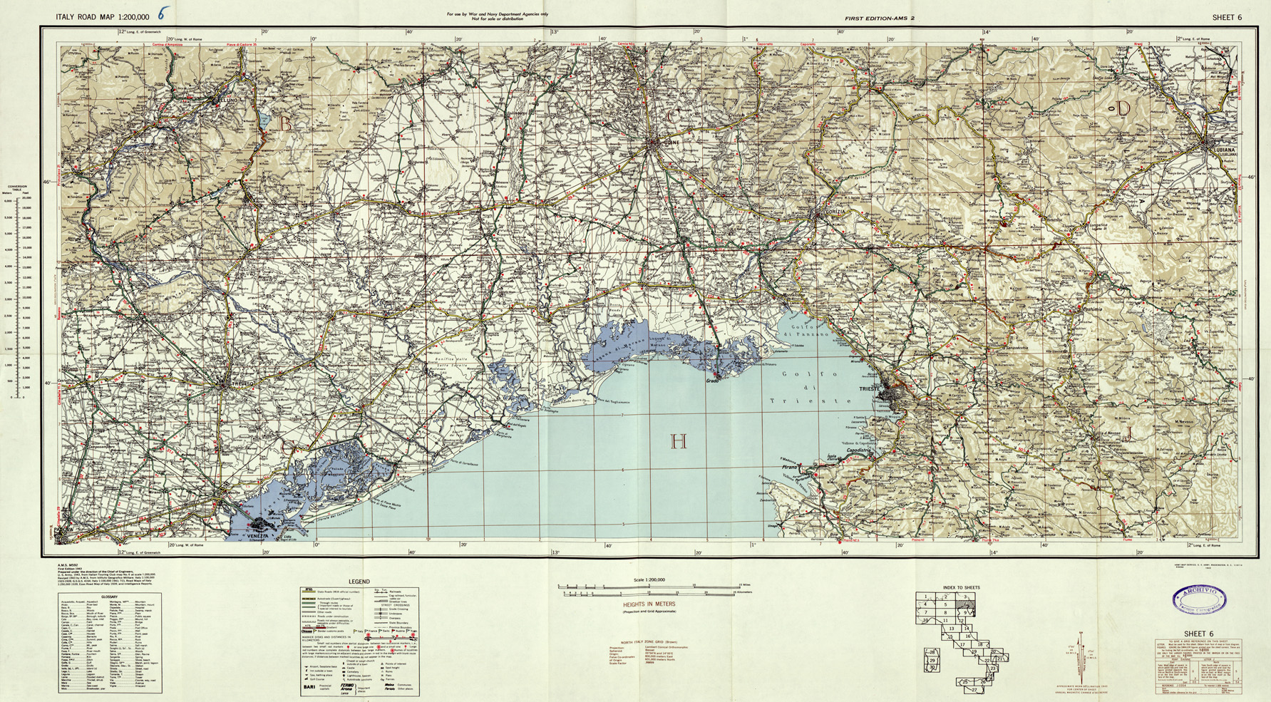 "Carta edita dall' Army Map Service Statunitense sulla base della Carta d' Italia al 200.000 del Touring Club Italiano."